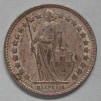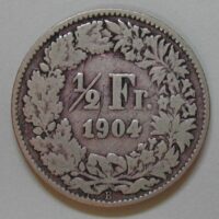 15.00 CHF Weitere Informationen½ FRANKEN 1904 B, SILBER 835, ca 2.38(4) gr., d=18mm, s+, ABART: 10 ° verdreht + Stempelriss RS