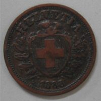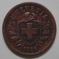 25.00 CHF Weitere Informationen2 RAPPEN 1886 B, Bronze ca 2.50(7) gr., d=20mm, ss, Prägeschwäche + St. Riss