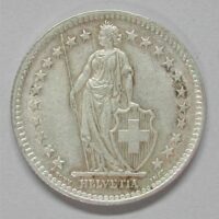 AS: stehende Helvetia mit Schild und Speer zwischen Sternen, in Ex: A BOVY – HELVETIA – INC T., ABART: Prägeschwäche unter HELVETIA, Buchstaben unten wie abgedrückt