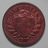 30.00 CHF Weitere Informationen2 RAPPEN 1907 B, Bro ca 2.50(0) gr., d=20mm, ss, AS + RS gezeichneter Stempel