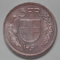 18.00 CHF Weitere Informationen5 Franken 1931 B, Ag 835, 15.04 gr., d=31mm, ABART: 13 * über Kopf, g.ss
