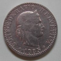 AS: CONFOEDERATIO HELVETICA ✤ 1883 ✤, jugentlicher Frauenkopf nach rechts, Diadem mit: LIBERTAS, ABART: Kremdkörpereindruck hinter dem Kopf
