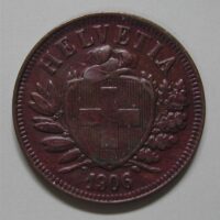 50.00 CHF Weitere Informationen2 RAPPEN 1906 B, Bronze ca 2.42(5) gr., d=20mm, ss+, AS gezeichneter Stempel