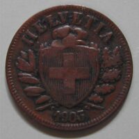 50.00 CHF Weitere Informationen2 RAPPEN 1903 B, Bronze ca 2.51(6) gr., d=20mm, -ss, 5 – 10 ° verschoben
