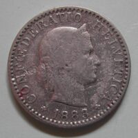 50.00 CHF Weitere Informationen20 Rappen 1885 B, Ni ca 3.98(5) gr., d=21mm, ABART: ca 30-40° Verdrehung, s+
