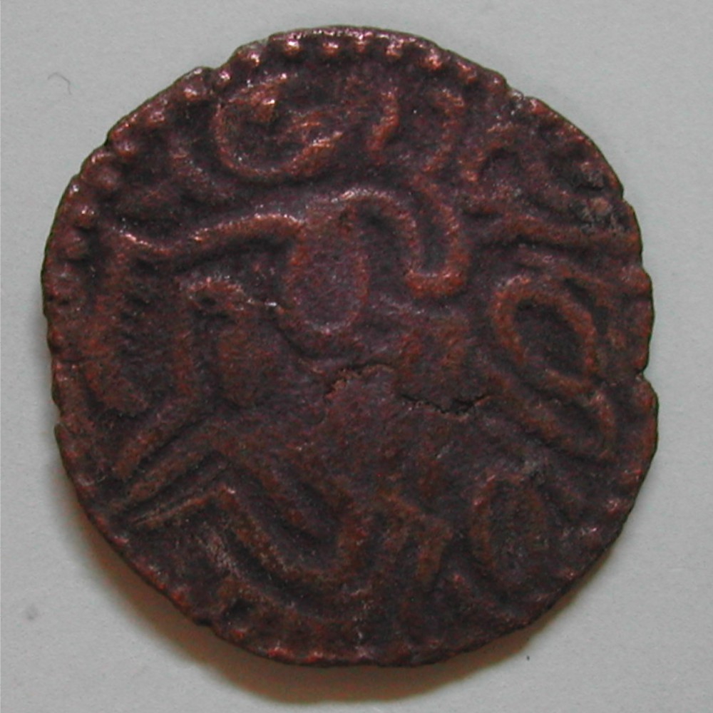 180.00 CHF Weitere InformationenCEYLON, PARAKRAMA BAHU I. 1153-1186 AD, 1/8 MASSA AE ca 0.49(6) gr., d=10mm, ss+, RR!