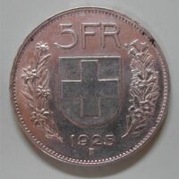 140.00 CHF Weitere InformationenCH, 5 FRANKEN 1925 B (BERN), SILBER 900 ca 25.0 gr., d=37mm, ss+, gereinigt
