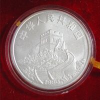 110.00 CHF Weitere InformationenCHINA, VOLKSREPUBLIK, 5 YUAN 1986, FDC in Box, SILBER 900, ca 26.7 gr., d=35mm