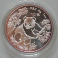 120.00 CHF Weitere InformationenCHINA, PANDA, 10 YUAN 1989 / 1OZ, SILBER 999, ca 31.1 gr., d=40mm, FDC in Kapsel