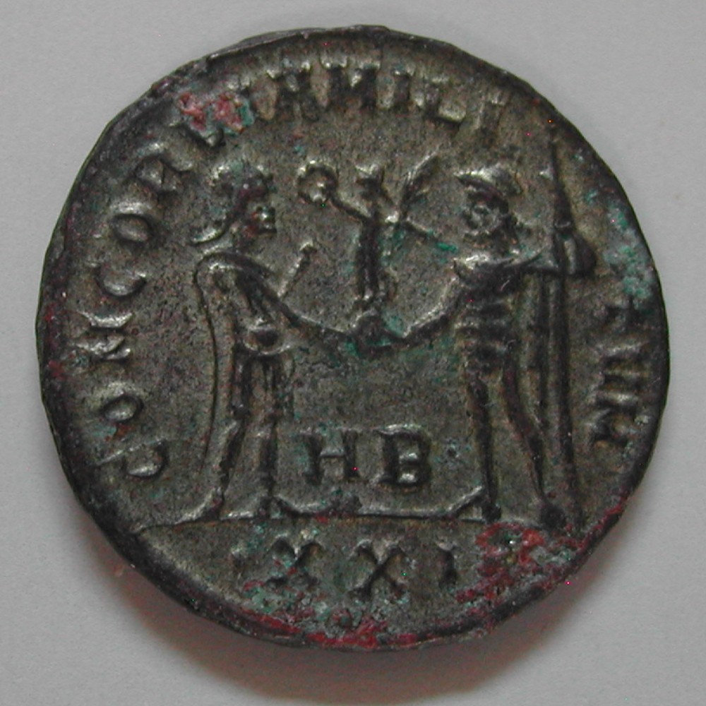 RS: CONCORDIA MILITVM, Diocletian nach rechts stehen nimmt eine Viktoria von Jupiter in Empfang / HB, in Ex: •XXI