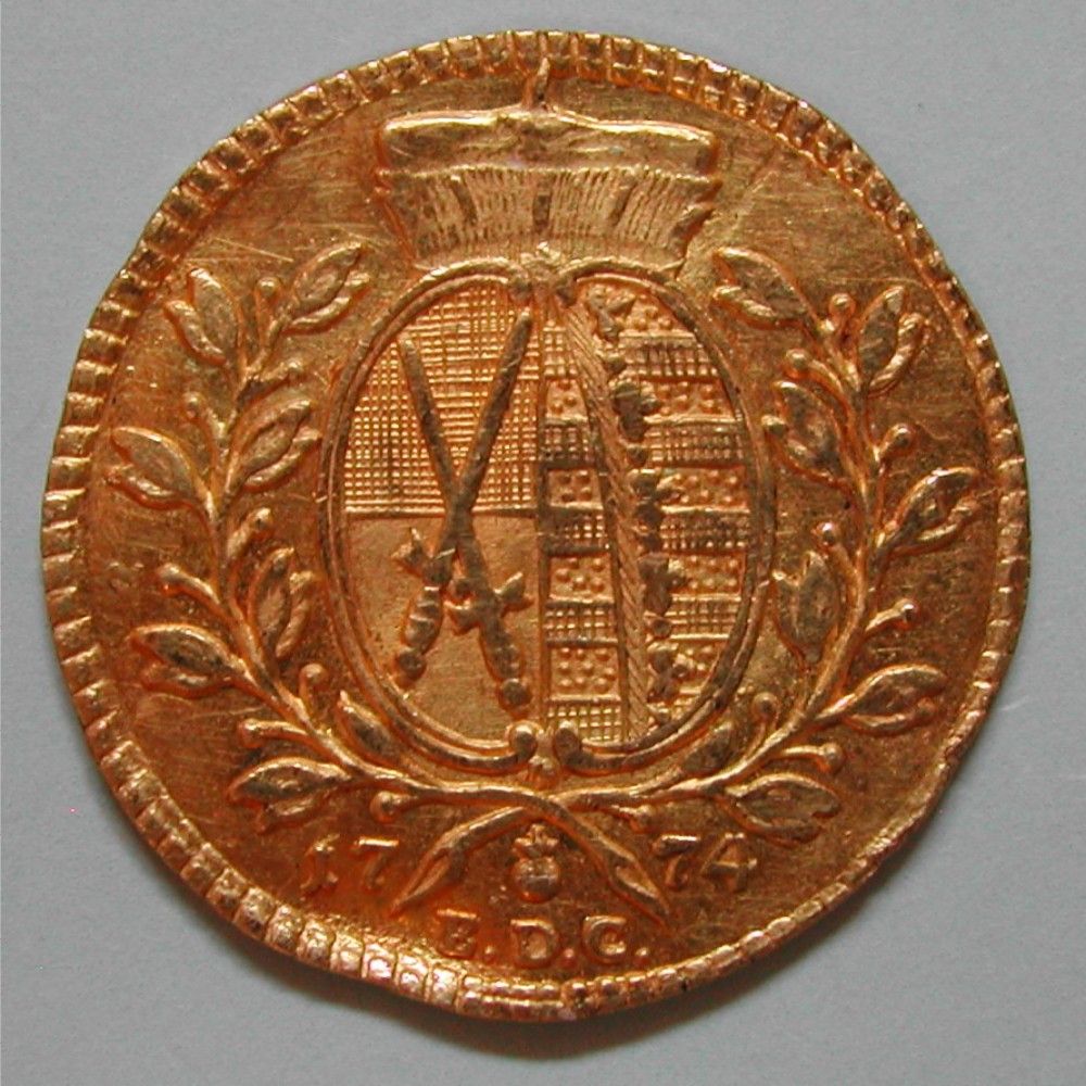 RS: Gekröntes Wappen zwischen Lorbeerzweigen, unten: 17 – 74 / E.D.C.