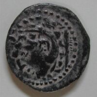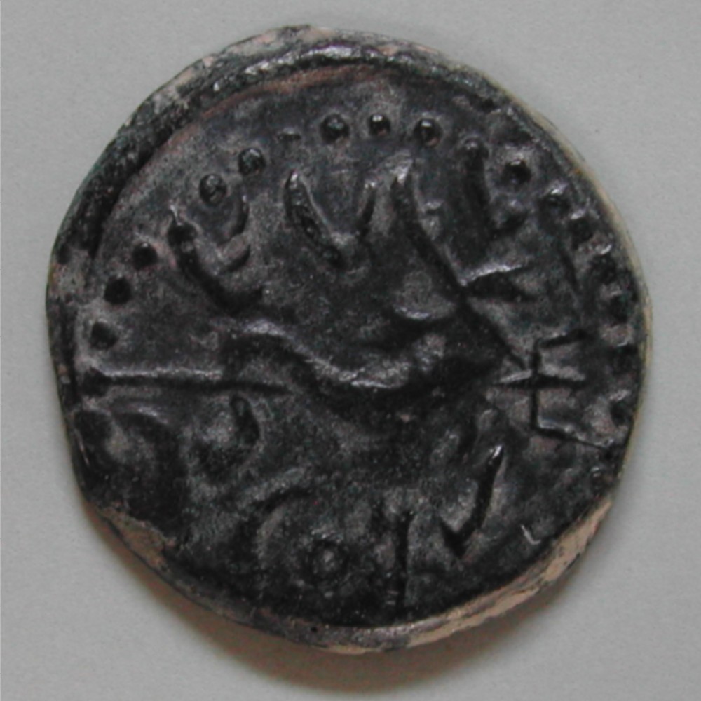 AS: Frauenkopf mit Haarknoten nach rechts, gross Dreiecksnase darin punkt (Auge, vor dem Gesicht Palmzweig, untern Mondsichel