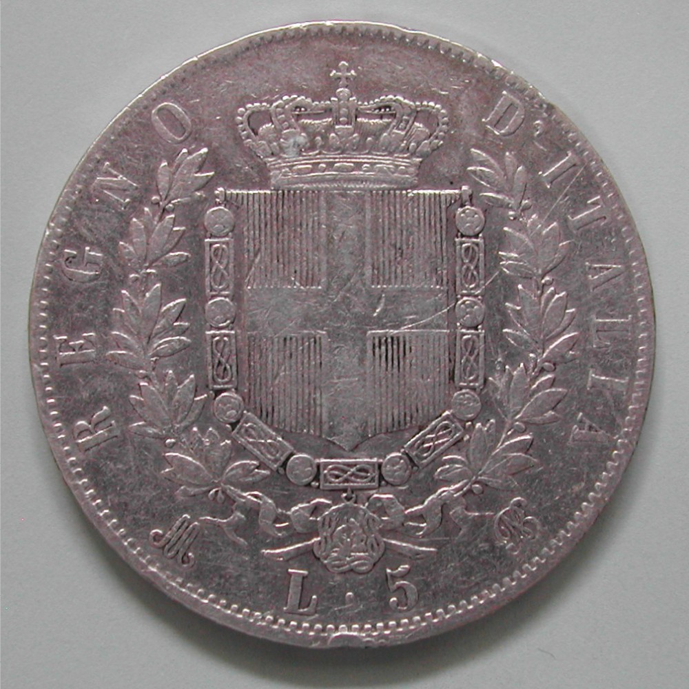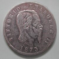 50.00 CHF Weitere InformationenITALIA, VITTORIO EMANUELE II., 5 LIRE 1873 M, SILBER 900, ca 25 gr., d=37mm (LMU), -ss