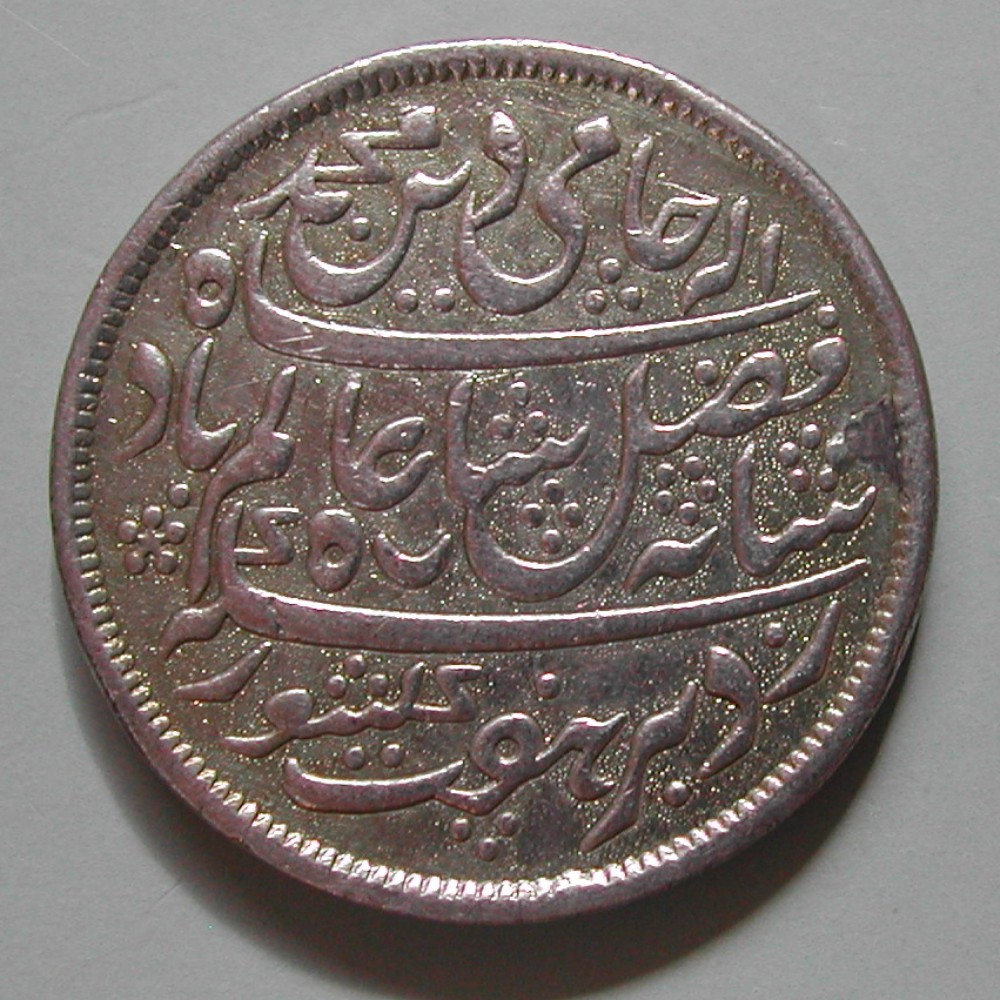 90.00 CHF Weitere InformationenINDIA, SURAT (GB), 1 RUPEE 1825, SILBER ca 11.61 gr., d=18mm, 4 mm dick, ss