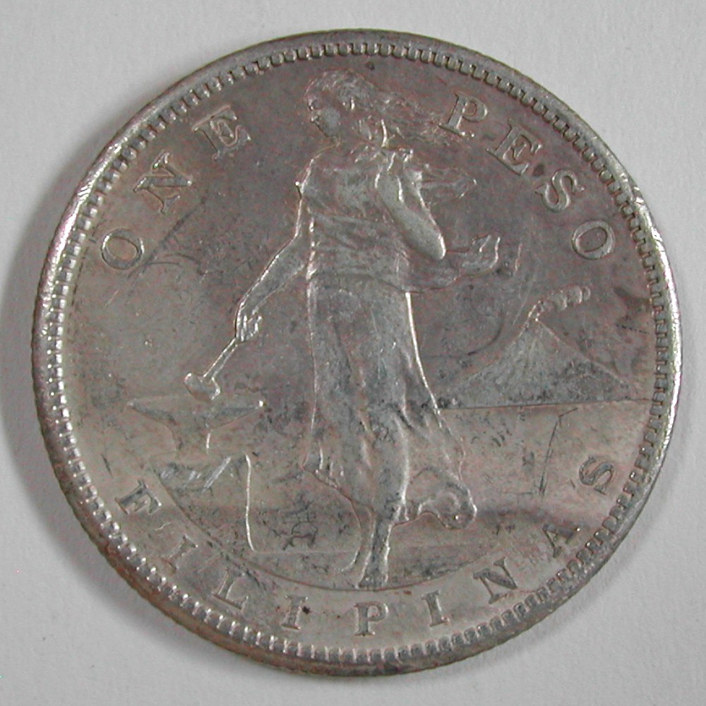 PILIPINAS under USA, 1 PESO 1908 S, SILBER, ss