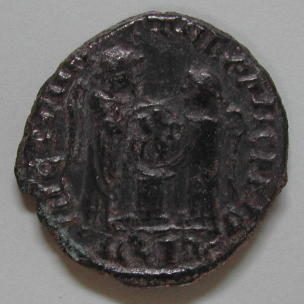 RS: Umschrift analog AS, 2 Viktorien einander gegenüberstehend, dazwischen Altar und Globus (?)