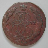 40.00 CHF Weitere InformationenRUSSIA, KATHARINA II., 5 KOPEKEN 1772, Cu 57.5 gr., d=44mm, g.ss